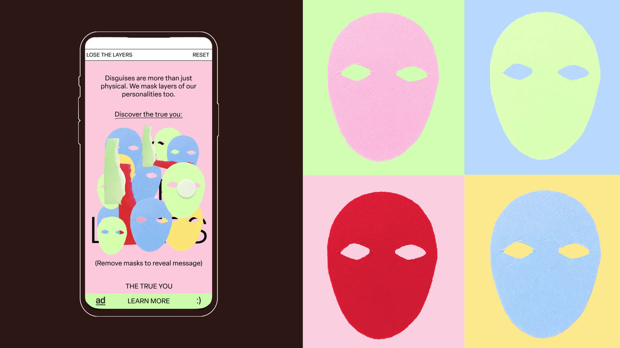 The Ad Council asked to inform the public about a South Carolina blue law. The campaign encourages self-expression and individuality through clear and positive communication. The visual metaphor draws on Carl Jung's mask theory in psychology, emphasizing the importance of shedding layers of false personalities. Bold, vibrant colors brought in inner child nostalgia while remaining true to the goal of positive messaging. I ripped construction paper in multiple colors and formed abstract faces and masks with the resulting shapes. Transitioning to screen, I developed the concept of swiping through layers, with each layer revealing further information on the law and the campaign. After the campaign presentation, 94% of the audience understood the messaging and calls to action extremely quickly. 100% said the campaign has great information hierarchy. 5/5 for creativity, clear archetype, and user success in learning about the law.